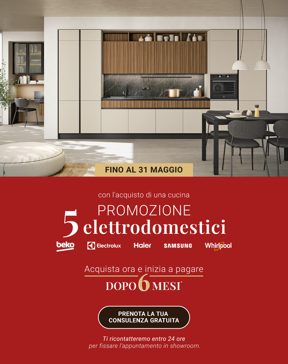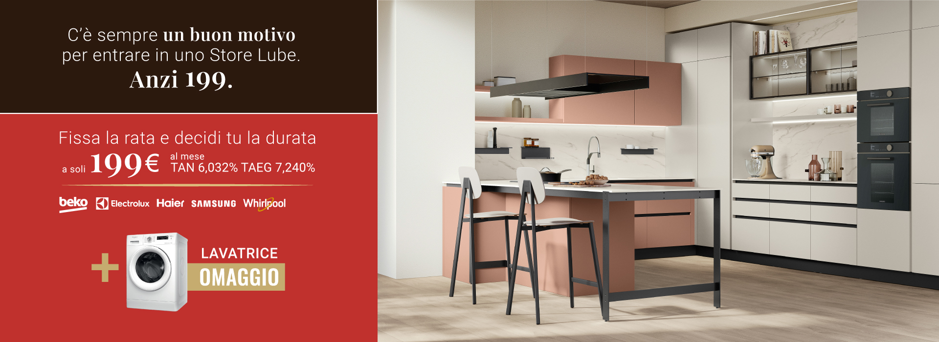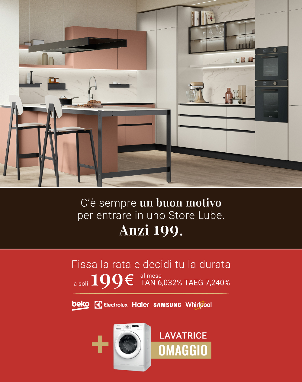 Dal 23 Febbraio al 7 Marzo puoi avere la tua cucina Lube alle condizioni più vantaggiose a partire da 199€* al mese.